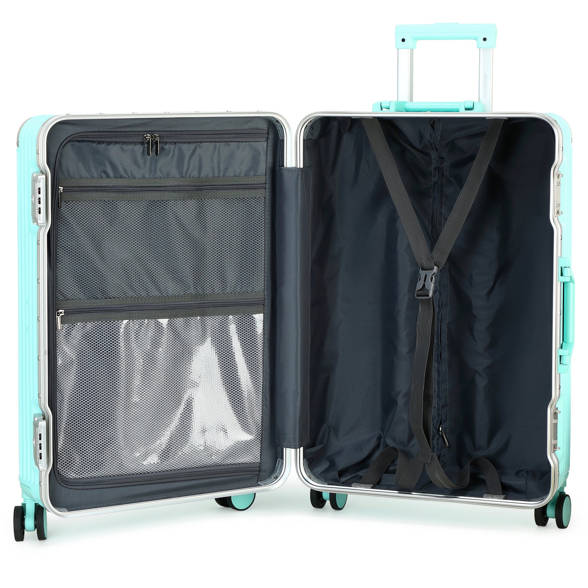 Esta maleta te sorprenderá con su estilo y comodidad. Su exterior con el marco de aluminio y sus esquinas reforzadas protegerán tus pertenencias de cualquier impacto. Además, cuenta con dos cerradura de combinación TSA que le permitirá viajar con la mayor seguridad. Su calidad refinada se combinan para ofrecer una calidad superior. Para poder manejarla con la mayor comodidad, ofrece ruedas dobles y tirador de doble tubo. El espacioso interior de Doha Aluminio Frame está diseñado para tener todo el espacio que necesitas en tus viajes. Los dos compartimentos tienen cintas de sujeción, almohadillas divisoras y bolsillos de distintos tamaños para poder guardar todas tus pertenencias de forma ordenada. En su exterior cuenta con una cubierta de policarbonato pero con acabados de aluminio, creando un diseño bonito y elegante.